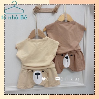 Bộ gấu 100% cotton co giãn 4 chiều, style Hàn quốc dễ thương cho bé size 6-18kg