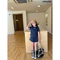SET VÁY THUN THỂ THAO BÉ GÁI NGẮN TAY VIỀN SỌC IN NƠ TỪ 12-45KG CHO BÉ GÁI