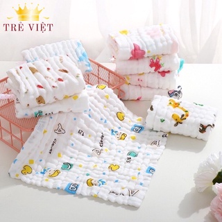 Set 5 khăn sữa, khăn mặt nhăn 6 lớp cho bé trai/ bé gái (nhiều hình)