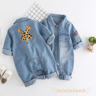 Romper liền mảnh denim in hình hươu cao cổ cho bé