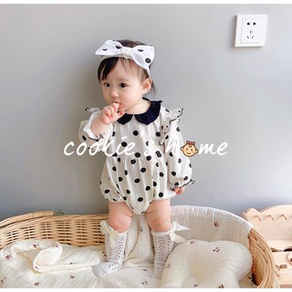 [Cocandy Official Store] Bộ đồ cho bé họa tiết chấm bi dài tay màu cam cổ phối ren