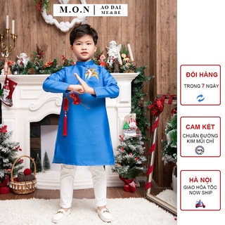 Áo dài Tết bé trai, áo dài gấm cao cấp bé trai xẻ tà họa tiết rồng phượng cho bé 11kg đến 34kg