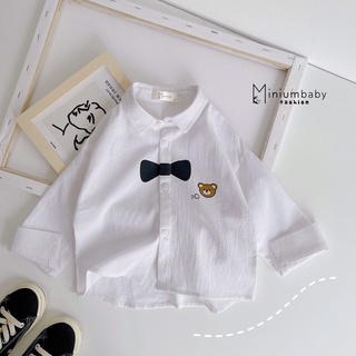 Áo sơ mi bé trai chất liệu thô cara mềm mịn, áo bé trai sơ mi Miniumbaby in nơ thêu gấu sành điệu