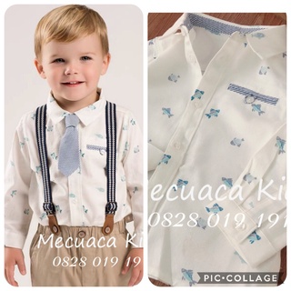 [4y,5y,9Y] Áo sơ mi dài tay họa tiết màu trắng cho bé trai xuất dư xịn