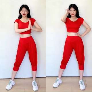 Set bộ tập gym nữ thể thao áo tay ngắn quần dài legging chất thun poly