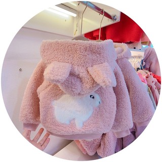 Áo khoác cho bé, áo gió lông cừu 3 lớp cho bé hình ngộ nghĩnh cho bé gái từ 1-5 tuổi có tai thỏ đáng yêu