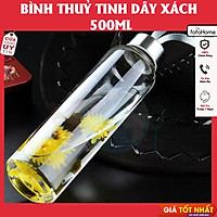 Bình Nước Thủy Tinh, Chai Detox Có Dây Xách 500ml Chai Thủy Tinh Đựng Nước 500ML - Nắp Thiếc Vặn Có Dây Treo (Bình Thủy Tinh Đựng Nước, Đựng Sữa - Chai Thủy Tinh Đựng Nước Ép)