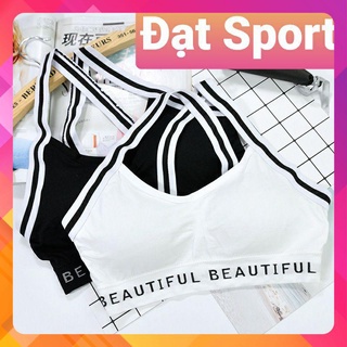 Áo bra tập gym yoga thể thao crotop sẵn đệm ngực hàng đẹp - Áo sát nách viền chữ