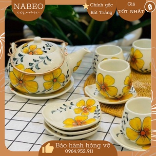 Bộ ấm chén uống trà cối xay cao cấp, bộ ấm chén pha trà đạo 9 món gốm sứ đặc biệt BACCX00