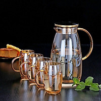 BỘ BÌNH NƯỚC THỦY TINH 2L CHỊU NHIỆT KÈM 6 CÓC CÓ QUAI CẦM VÀNG