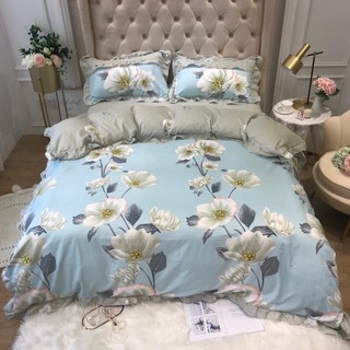 Bộ Chăn Ga 5 Món Cotton Tici Nhập Khẩu , Màu Xanh Dương nhạt - Be, Chất đẹp ( không bao gồm ruột chăn)