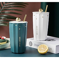 CỐC UỐNG NƯỚC BẰNG SỨ VÂN SỌC KÈM ỐNG MÚT HỢP KIM CAO CẤP