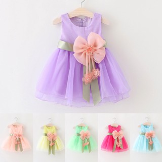 Đầm xòe có nơ đi tiệc kiểu công chúa cho bé gái