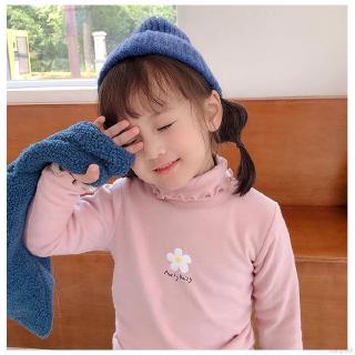 0-6Y Autumn Children Girls Thick Warm Floral High Collar Bottoming T-Shirt Top