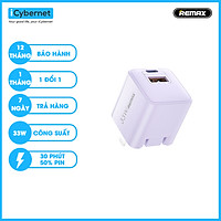 Củ sạc nhanh GaN công suất 33W Remax RP-U25 chuẩn kép PD + QC 3.0 - Hàng chính hãng