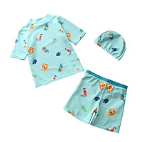 Bộ Đồ Bơi Khủng Long Xanh Dành Cho Bé Trai CaoTừ 85cm - 125cm chất vải Polyeste thân thiện với trẻ em, mau khô, thấm hút mồ hôi tốt, thiết kế thời trang bắt mắt - Tặng kèm nón bơi vải cùng màu