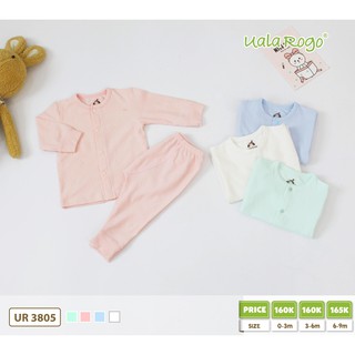 Bộ dài tay cho bé UNCHI cho bé trai bé gái sơ sinh cổ màu cúc giữa chất peptit mềm mịn trẻ 3,4,5,6,7,8,9,10,11,12 tháng
