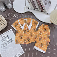 Bộ Quần Áo Dài Tay In Hình Gấu HAHA Tay Bèo Vải Tăm Lạnh Dễ Thương Cho Bé Từ 8-20kg Mã TL02