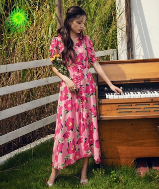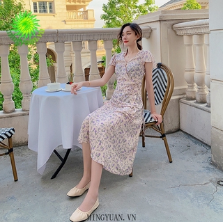 ( Mingyuan ) New V-neck floral high waist slimming dress