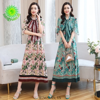 ( Mingyuan ) New temperament short-sleeved sleeve big-name printed floral mid-length dress