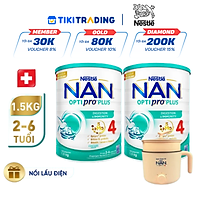Bộ 2 lon Sữa bột NAN OPTIPRO PLUS 4 Nestle Bé 2-6 tuổi 1500g/lon Giúp tiêu hóa tốt