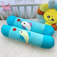 Gối ôm trẻ em dài 70cm Katina House, vải cotton cara mềm mại, thoáng mát, họa tiết đắp hình cá