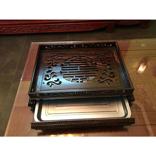 Khay trà rồng chầu,Khay chè chân quỳ gỗ mun cao cấp 2 cỡ khay trà - Hàng cao cấp uy tín