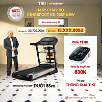 Máy chạy bộ KINGSPORT KS-2059 New nâng dốc tự động 18%, tốc độ tối đa 18km/h, kèm đai massage và thanh gập bụng, cân nặng phù hợp từ dưới 80-85kg