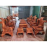 bộ bàn ghế phòng khách rồng khuỳnh nghê đỉnh gỗ xà cừ tay 12 bàn đục