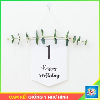 Cờ treo - Banner Happy Birthday In số tuổi trang trí sinh nhật theo phong cách Vintage Hàn Quốc