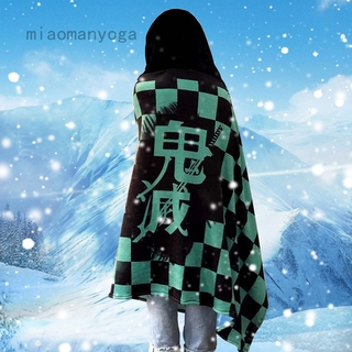 Áo choàng vải flannel siêu mềm ấm áp có mũ trùm hình anime Demon Slayer