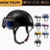 Mũ bảo hiểm xe máy nửa đầu Rona Pug kèm kính phi công viền bạc, nón xe máy nam nữ freesize
