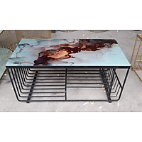 Bàn Trà Bàn Cafe Gỗ Bàn Trang Trí Nội Thất Phòng Khách Mặt Gỗ Phủ Sơn Cẩm Thạch Khung Ferrum Vàng Gold Sẫm
