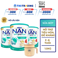 Bộ 3 Lon Sữa bột Nestlé NAN OPTIPRO PLUS 4 1500g/lon Giúp tiêu hóa tốt + Tăng cường đề kháng (2 - 6 tuổi) - Tặng Nồi lẩu điện A2