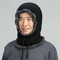 Bộ khăn mũ len liền cổ lót lông cho người lớn tuổi cực ấm - khan mu len lot long