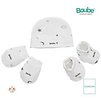 Set phụ kiện mũ, bao chân, bao tay họa tiết dễ thương cho bé sơ sinh Boube, vải Cotton organic thoáng mát - size Newborn