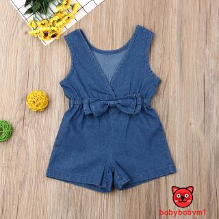 Bộ áo liền quần ngắn bằng vải denim xinh xắn dành cho bé gái WBB