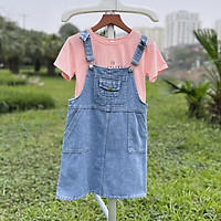 Yếm bò cho bé gái cộc tay size đại 7-14 tuổi túi ngực đính cúc kiểu dáng khỏe khoắn thời trang