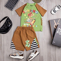 Đồ bộ bé trai, bộ cộc tay cho bé trai hình Khủng long size 10-40kg chất cotton mềm mịn mát