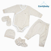 Set Bodysuit sơ sinh 5 món ComfyBaby (quần áo dài tay, bao tay chân, mũ) kẻ sọc