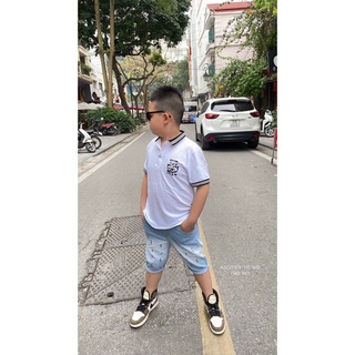 Áo phông ngắn tay chữ P cho bé trai chất cotton - Quần áo mùa hè trẻ em 2-8 tuổi (Có clip, ảnh thật)