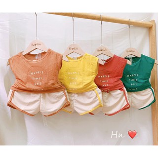 Bộ Ba Lỗ Chất Cotton Đũi Happie Chạy Viền Cho Bé NamkidShop (QATE293)
