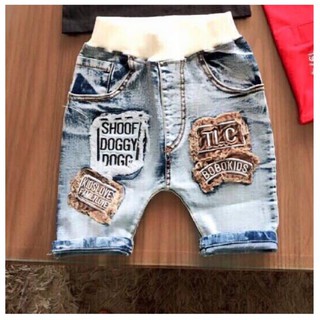Quần short Jean xước cho bé trai in hình chữ phong cách cá tính quần bé trai cute
