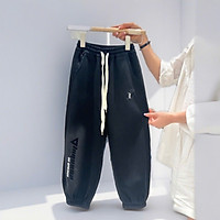Quần nỉ bé trai và bé gái dây rút 5-10 tuổi in số và chữ dày dặn không bai xù khỏe khoắn thời trang