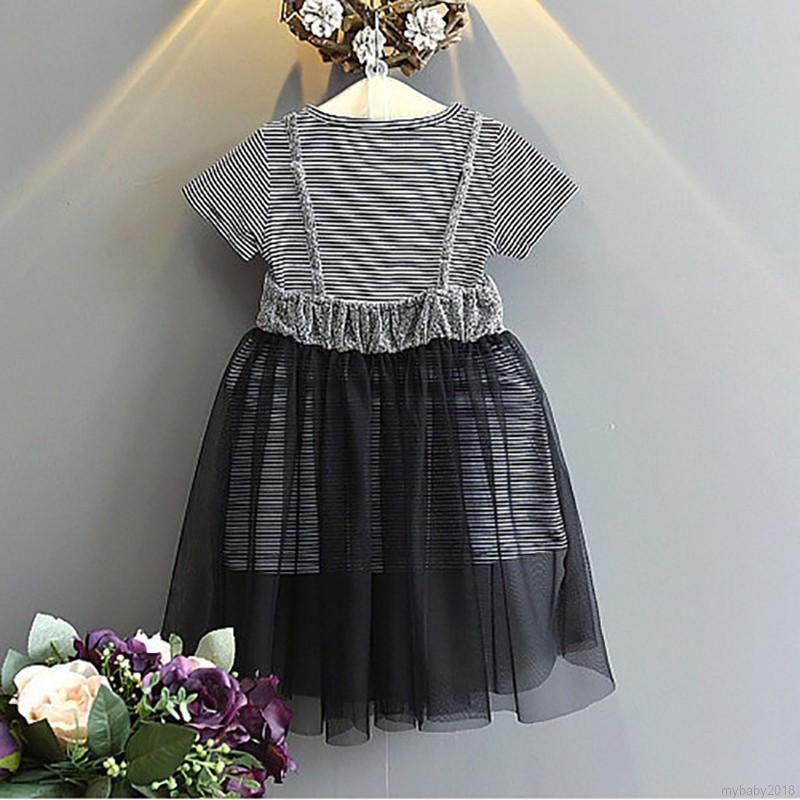 Đầm kẻ sọc ngắn tay dễ thương cho bé gái
