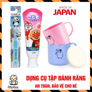Combo Nhật: 1 Kem đánh răng nuốt được Lion; 1 Cốc uống nước KOHKIN; 1 Bàn chải ion Kawanishi cho bé