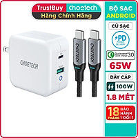 Bộ Củ Sạc Dành Cho Macbook, Laptop, Điện Thoại 65W CHOETECH PD8002 GaN Tech + Type-C to C 100W 1.8M XCC-1002-GY - Hàng Chính Hãng