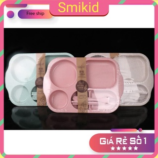 Khay ăn 3 ngăn cho bé có kèm khay để cốc, thìa dĩa