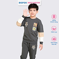 Bộ thu đông bé trai Bigfox Miss Meow chất nỉ da cá, dài tay có mũ trend Hàn Quốc size đại trẻ em 3,9,11 tuổi 40kg