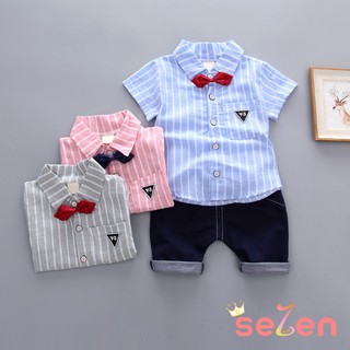 Set áo ngắn tay cổ bẻ kèm quần ngắn sọc caro 2 món cho bé 0-5 tuổi